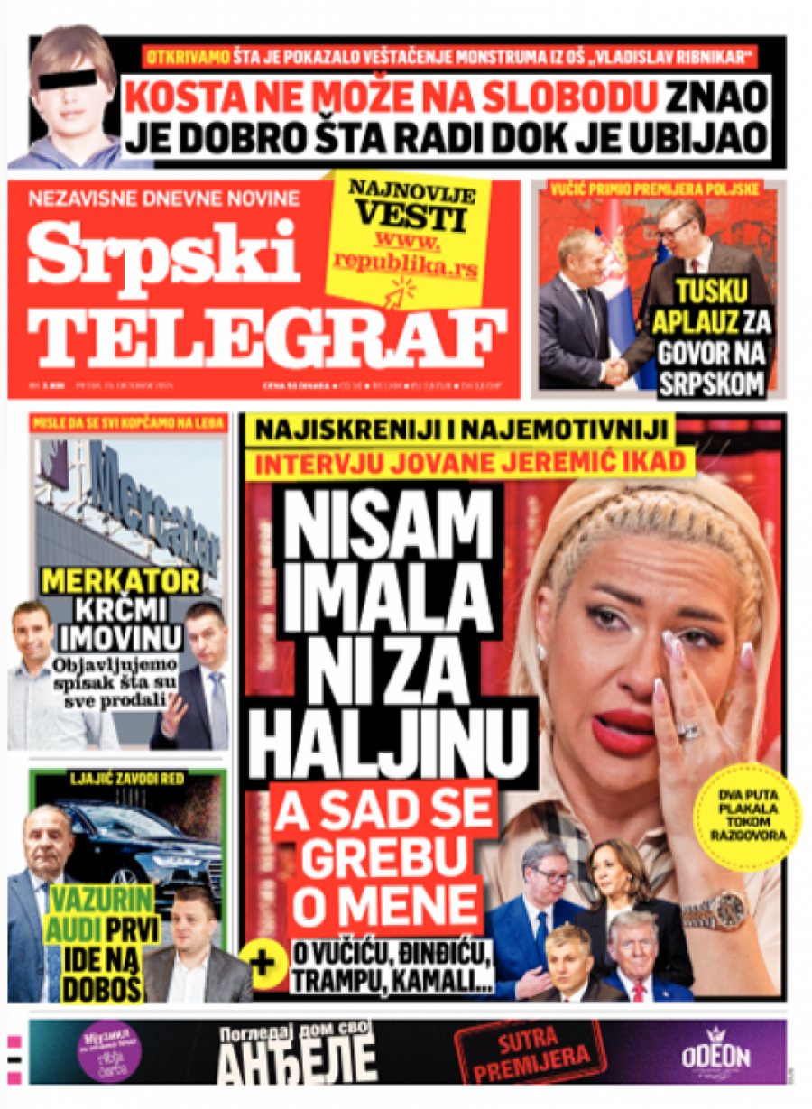 Srpski telegraf u izdanju za petak 25. oktobar donosi pregršt važnih i interesantnih priča!