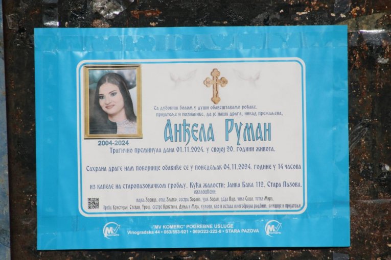 Anđela Ruman (20) iz Stare Pazove izgubila je život zajedno s dečkom Milošem Milosavljevićem (21) iz Knićanina kad se u petak srušila betonska nadstrešnica na Železničkoj stanici u Novom Sadu.