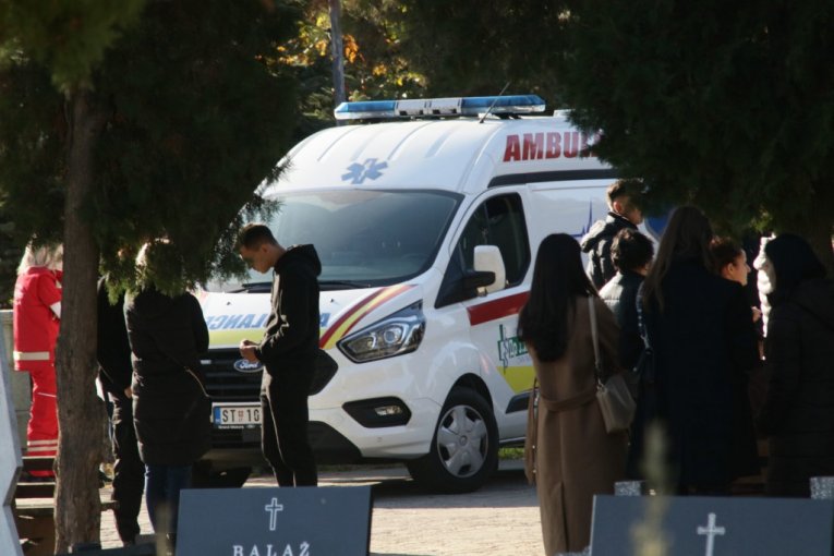 Na groblju u Staroj Pazovi je i vozilo Hitne pomoći.