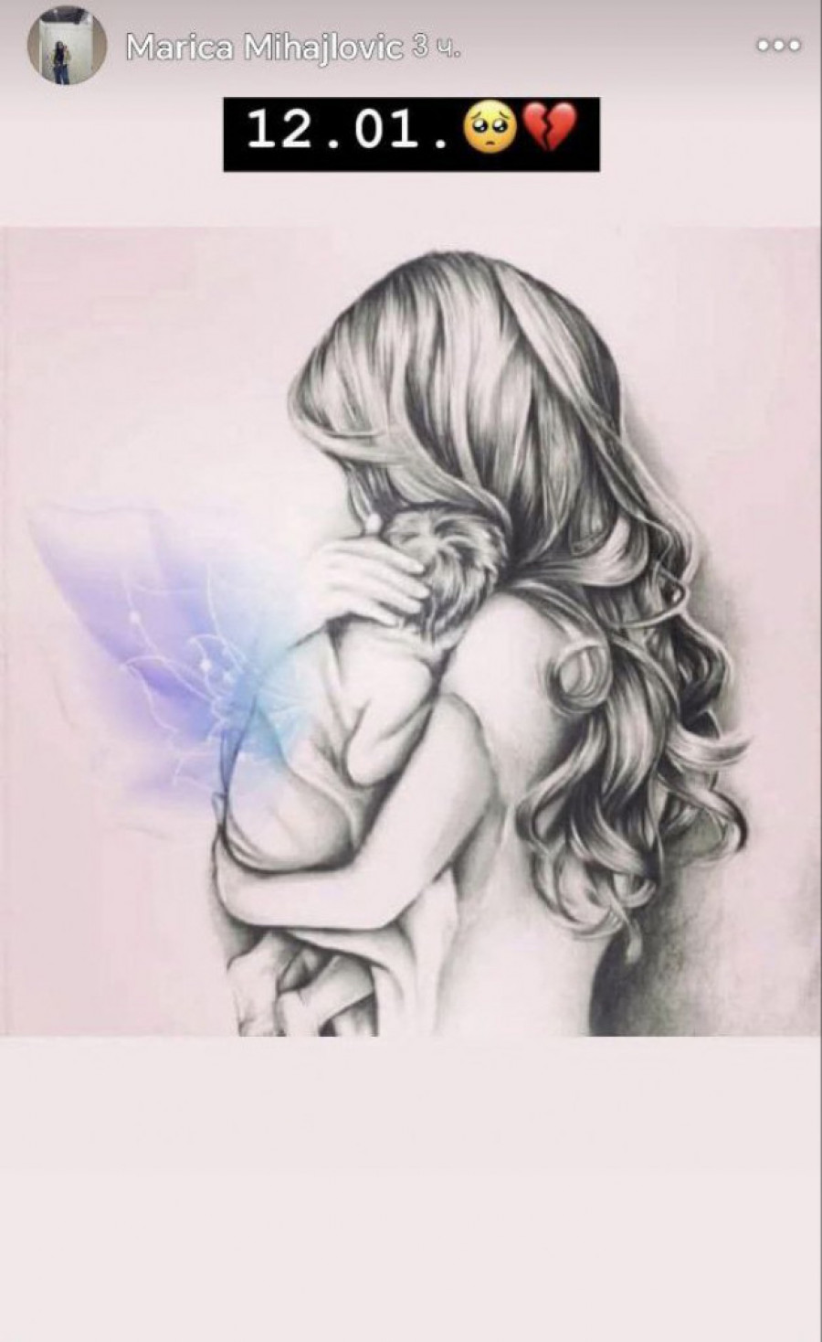 Majka Marica takođe je objavila potresan crtež, na kome se vidi majka s bebom u naručju.