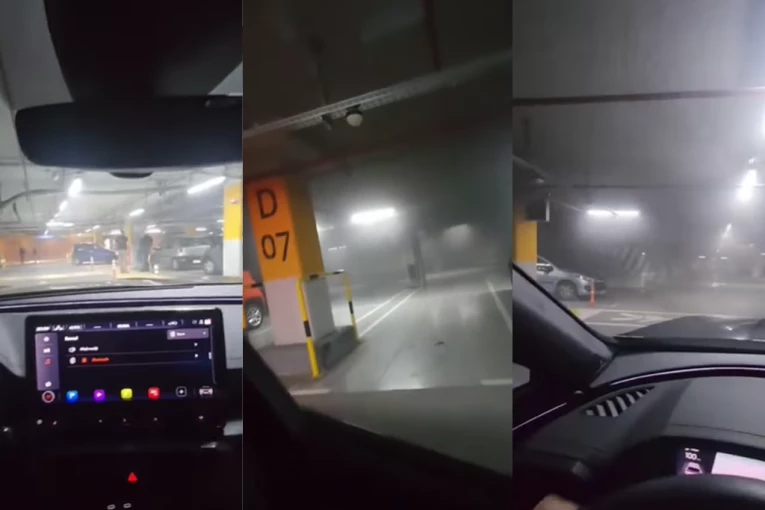 SNIMAK DRAME U "UŠĆU"! Ovako je izgledala garaža pod dimom tokom požara i evakuacije! (VIDEO)