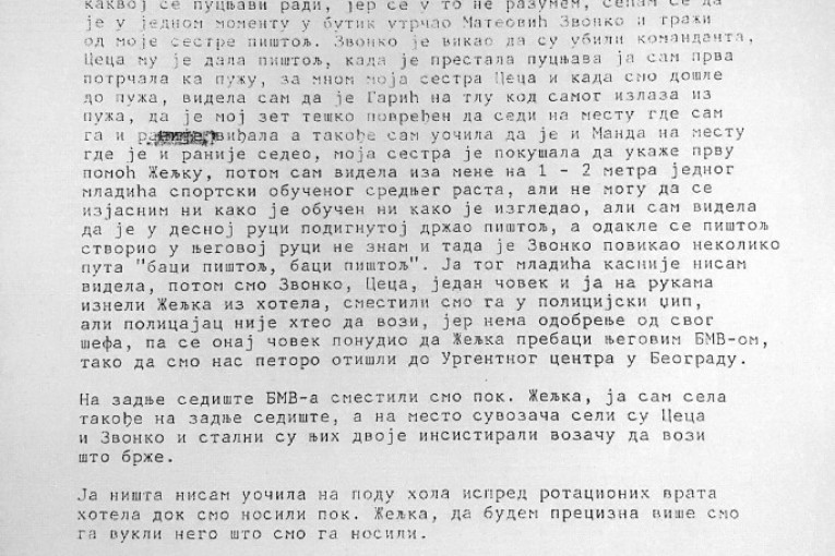 VRIŠTALA SAM I VADILA MOM ŽELJKU KRV IZ USTA! Jezivi detalji iz dokumenta o ubistvu Željka Ražnatovića Arkana!