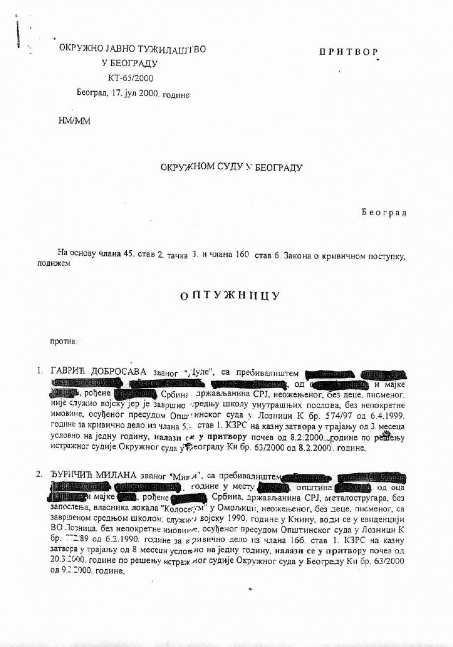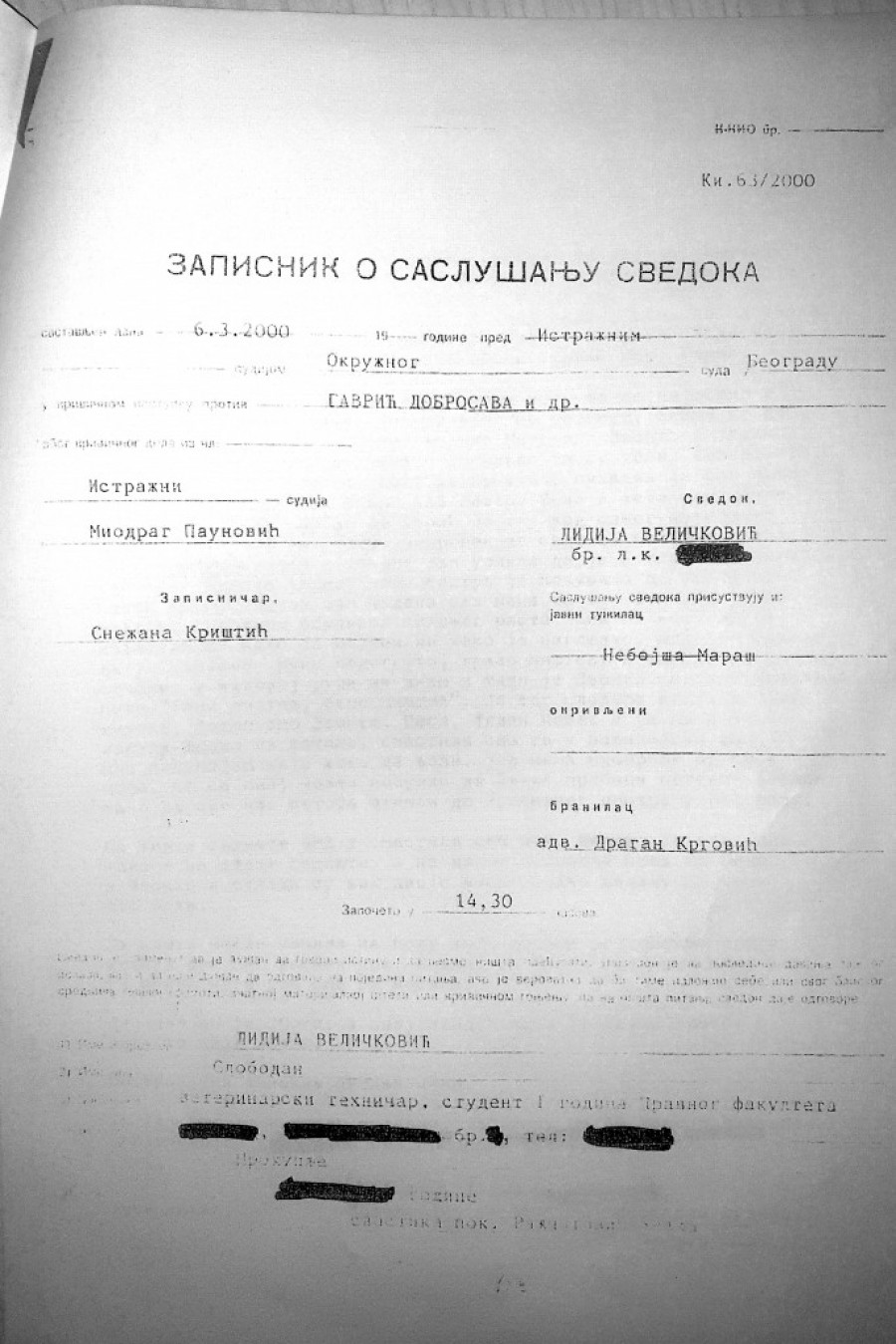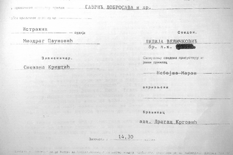 Ražnatovićeva je ispričala da je od svih osumnjičenih poznavala samo dvojicu - Dragana Nikolića zvanog Gagi, koji je kasnije osuđen na 30 godina robije, i Dejana Pitulića, koji je ranjenog napadača Dobrosava Gavrića prevezao u lozničku bolnicu.