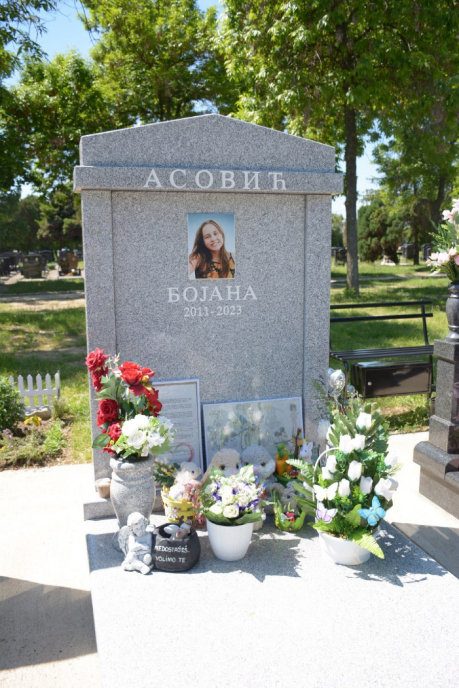 Pismo, crteži i igračke ispisani ljubavlju i patnjom devojčica s kojima je Bojana delila najlepše trenutke odrastanja, bolni su koliko i poruka njenog mlađeg brata, majke Marije i oca Bojana, po kojem je i dobila ime, ispisana na poleđini hladnog spomenika.
