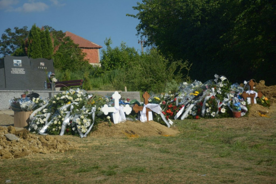 Opelo je služilo osam sveštenika, što je retko u ovom kraju, a svi su stajali uz otvorene kovčege, dok su se kroz narod širile molitve, suze i neverica. U crkvenoj porti, pod krošnjama starog drveća, stotine ljudi je stajalo tiho, poštujući trenutak tuge i gubitka.