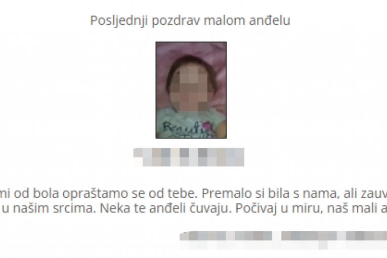 - Nemi od bola opraštamo se od tebe. Premalo si bila s nama, ali zauvek ostaješ u našim srcima. Neka te anđeli čuvaju. Počivaj u miru, naš mali anđele - piše u čitulji.