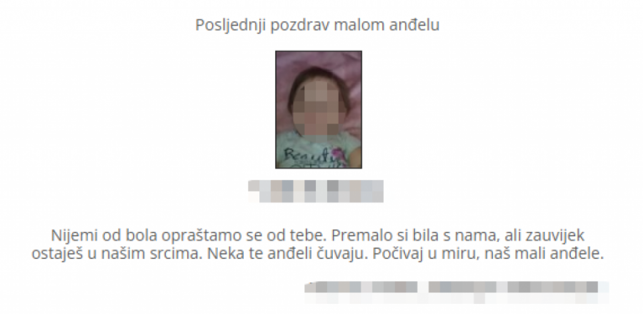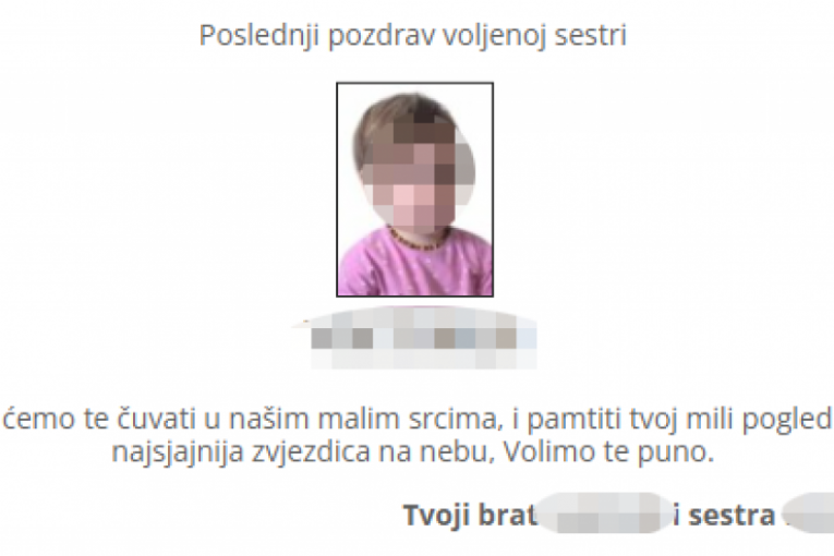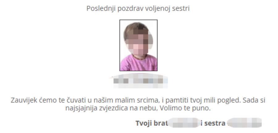 Svega nekoliko čitulja posvećeno je samo devojčici!