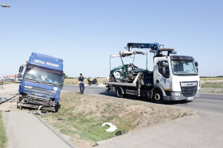 Ljudi koji su se nalazili na mestu nesreće, gde je prizor bio jeziv, kažu da je vozač kamiona, kada je video da automobil leti ka njemu, pokušao da ga izbegne.