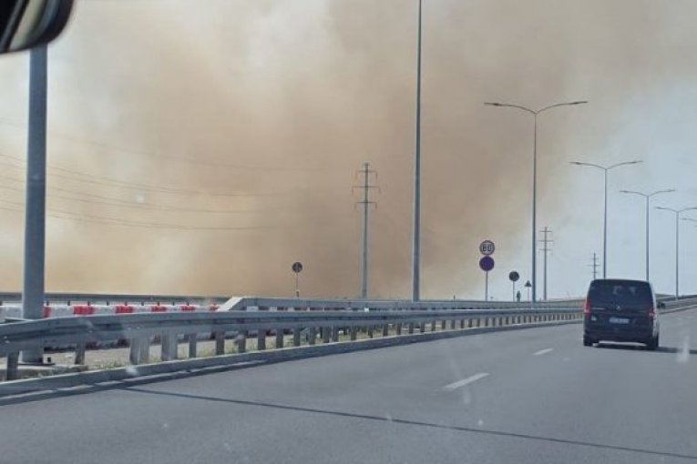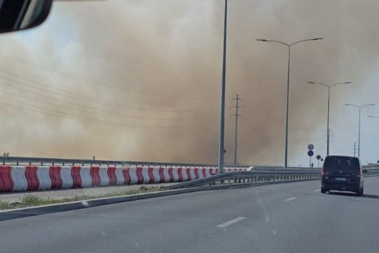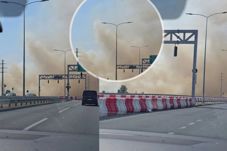 VELIKI POŽAR KOD SURČINA! Buktinja guta rastinje, kulja GUST DIM! (FOTO, VIDEO)