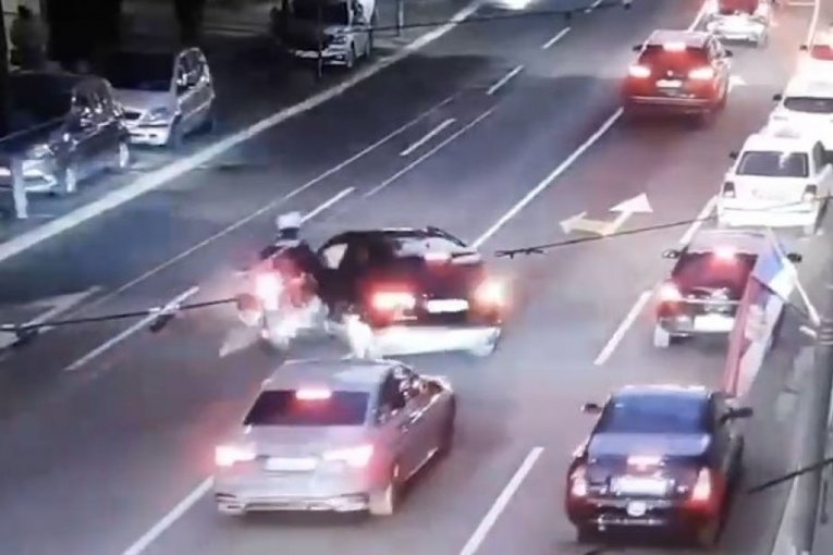 EVO U KAKVOM JE STANJU POLICAJAC NA KOG JE NALETELO VOZILO N1: Policijski službenik preleteo preko motocikla (FOTO)
