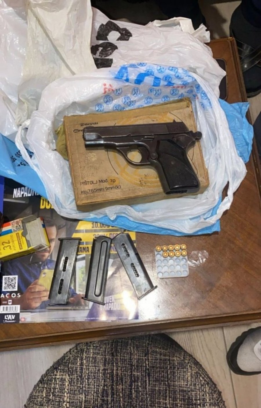 Policija je kući koju osumnjičeni koristi pronašla kilogram kokaina, kilogram i po heroina, kao i pištolj kalibra 7,65 milimetara sa pripadajuća tri okvira i pištoljskom municijom.