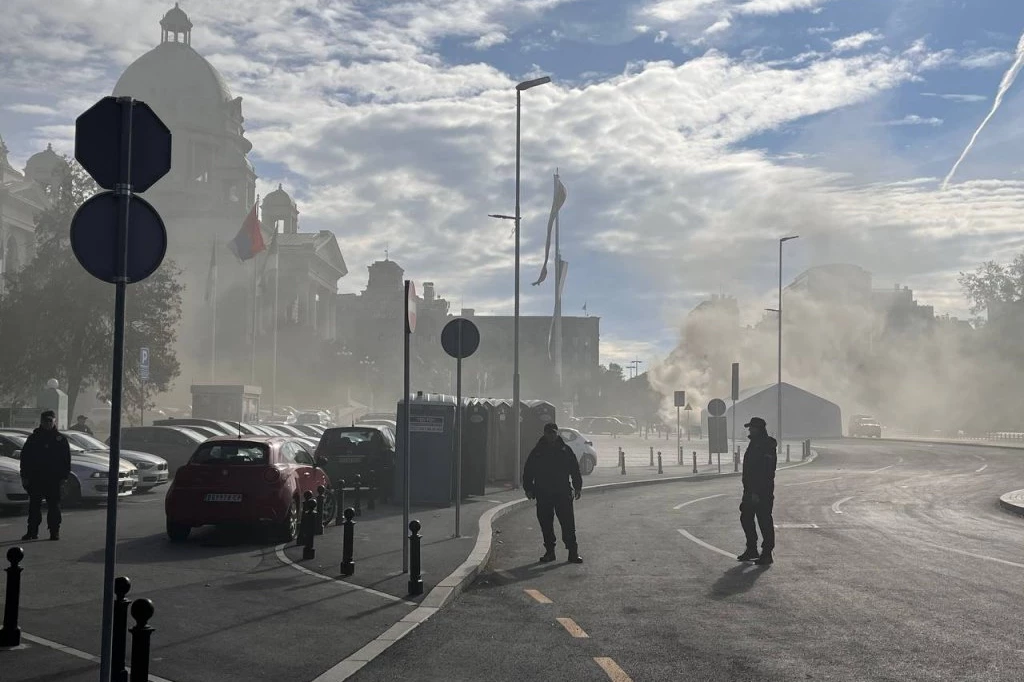 POŽAR ISPRED SKUPŠTINE SRBIJE! Gori šator, gust crni dim kulja, IMA POVREĐENIH! (FOTO)