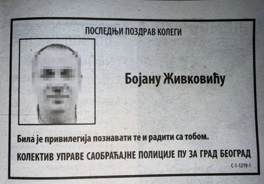 - Bila je privilegija poznavati te i raditi sa tobom - stoji u čitulji koju potpisuje kolektiv uprave saobraćajne policije PU za grad Beograd.