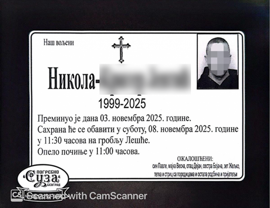 Sahrana mladića će se održati u subotu na groblju Lešće u Beogradu.