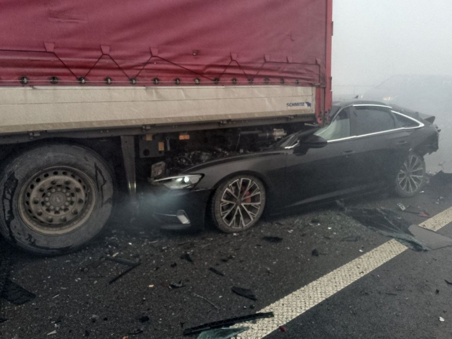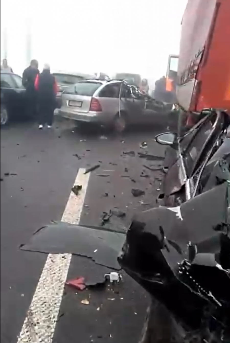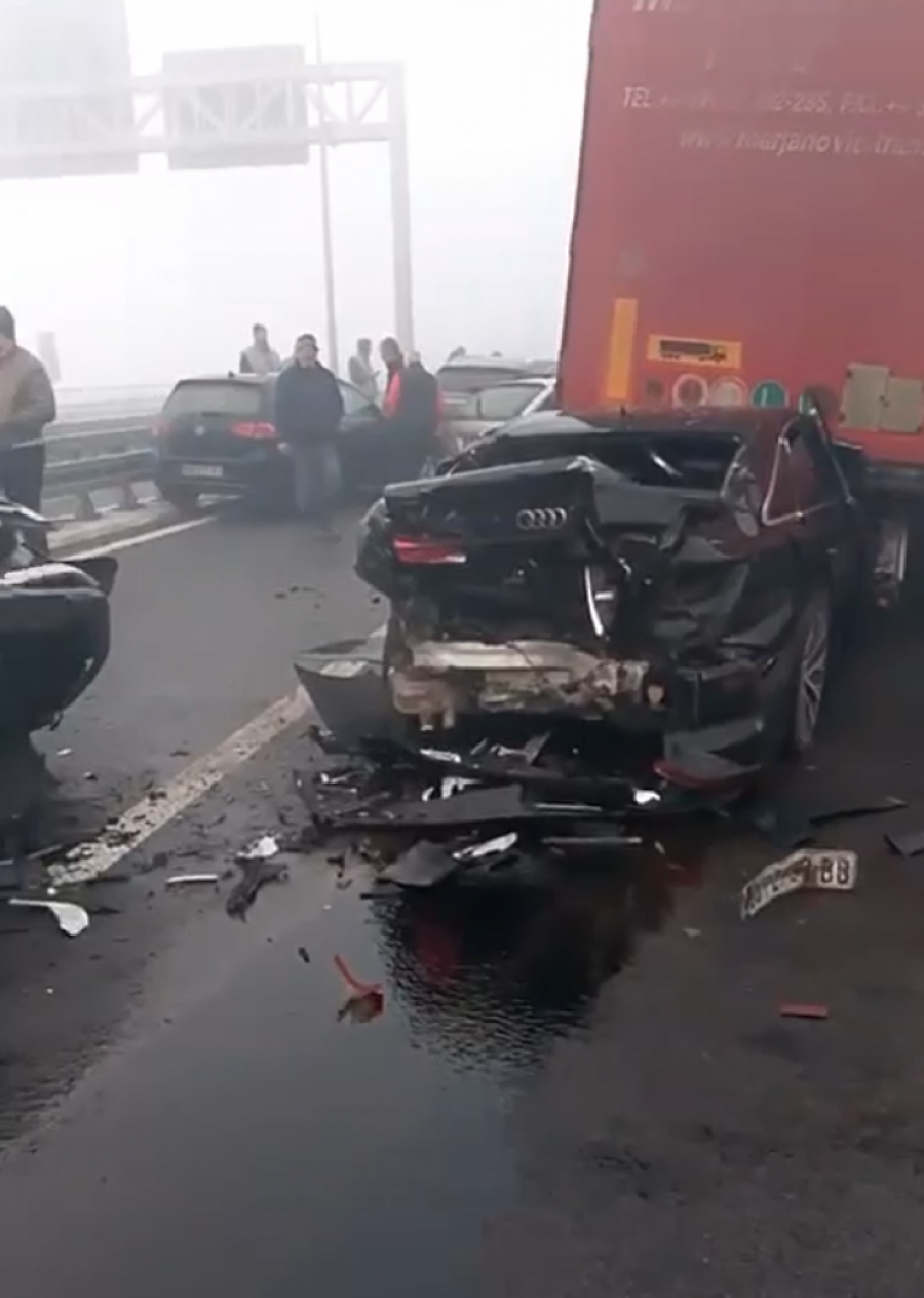 U sudaru je učestvovalo najmanje osam vozila. Jedan automobil udario je u kamion i ostao zaglavljen ispod zadnjeg dela teretnog vozila.