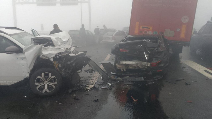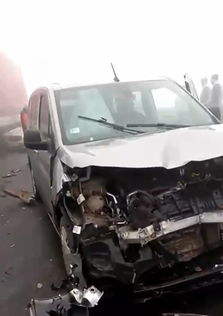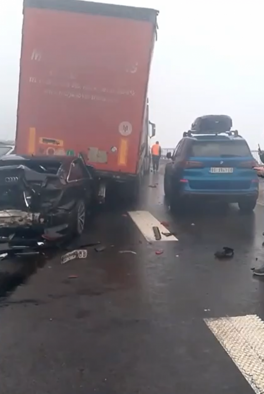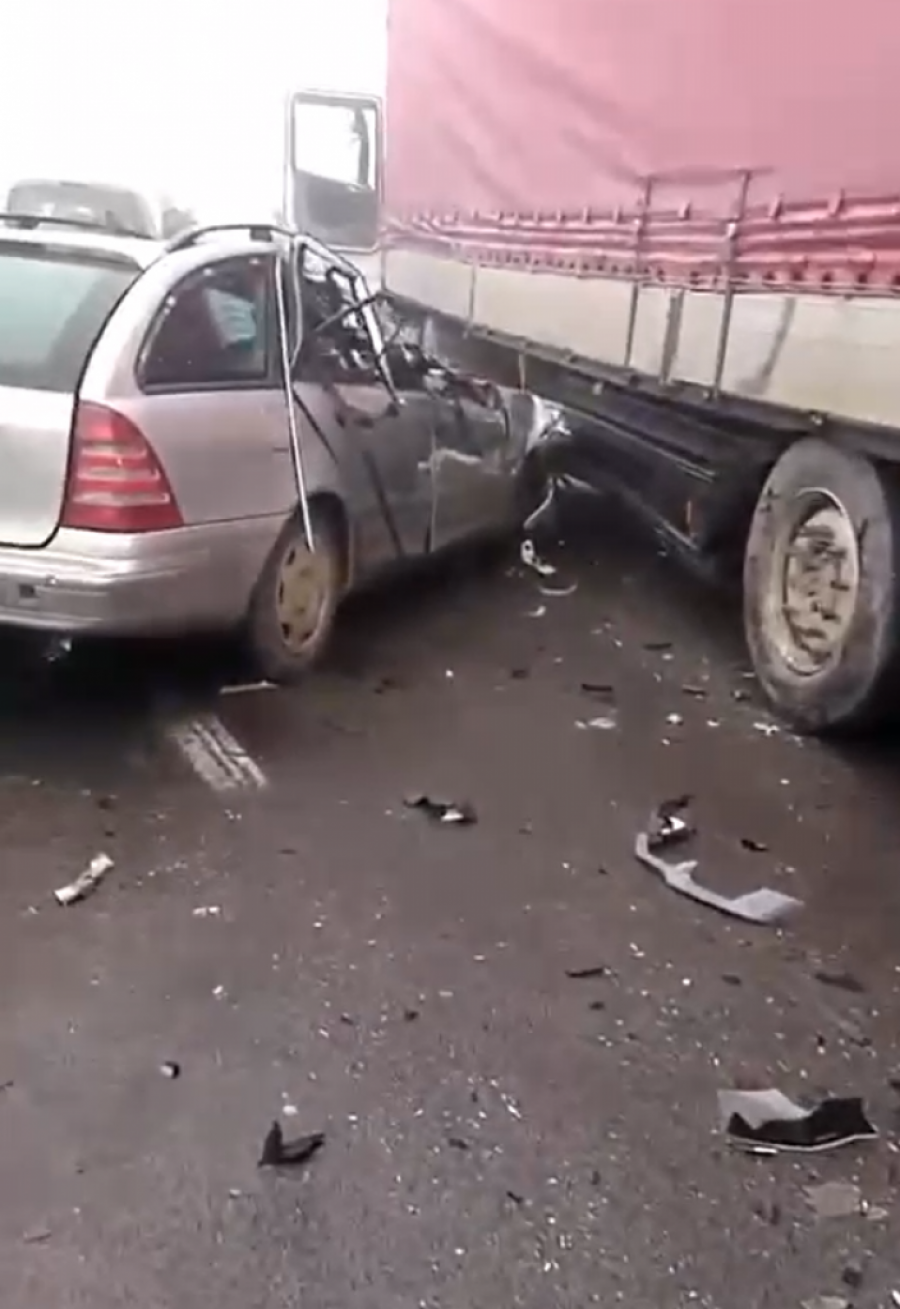U sudaru je učestvovalo najmanje osam vozila. Jedan automobil udario je u kamion i ostao zaglavljen ispod zadnjeg dela teretnog vozila.