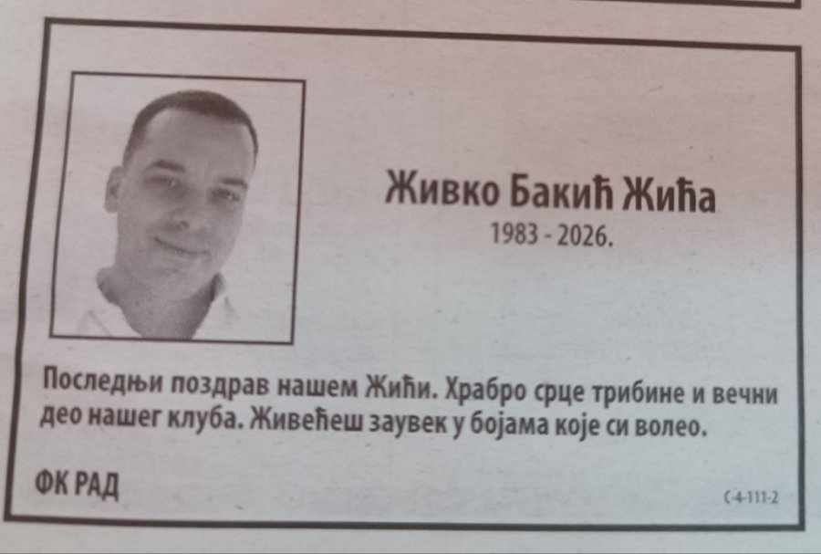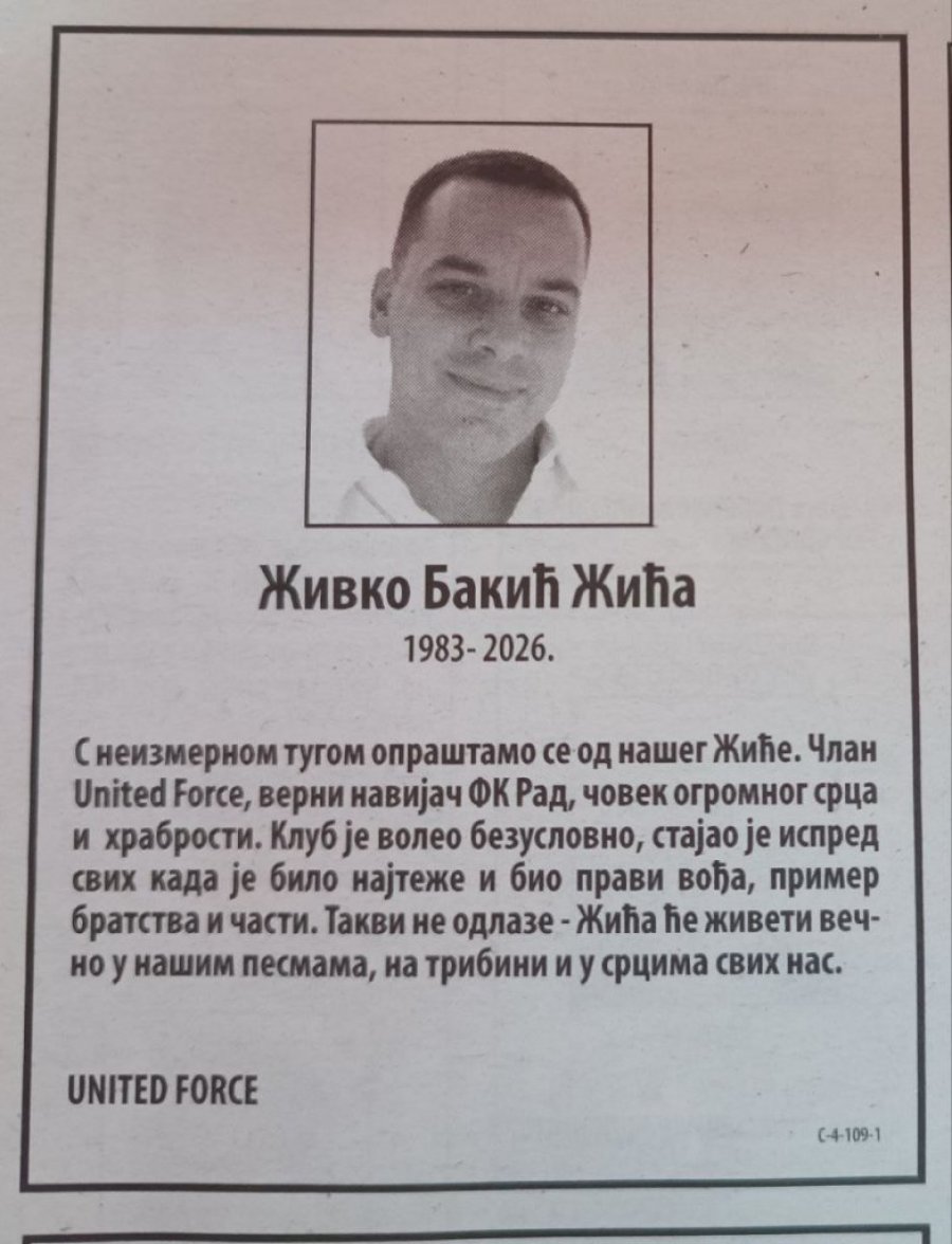 - S neizmernom tugom opraštamo se od našeg Žiće. Član "Junajted forsa", verni navijač FK Rad, čovek ogromnog srca i hrabrosti. Klub je voleo bezuslovno, stajao je ispred svih kad je bilo najteže i bio pravi vođa, primer bratstva i časti. Takvi ne odlaze. Žića će živeti večno u našim pesmama, na tribini i u srcima svih nas - napisano je na čutulji koja je potpisana "Junajted fors"