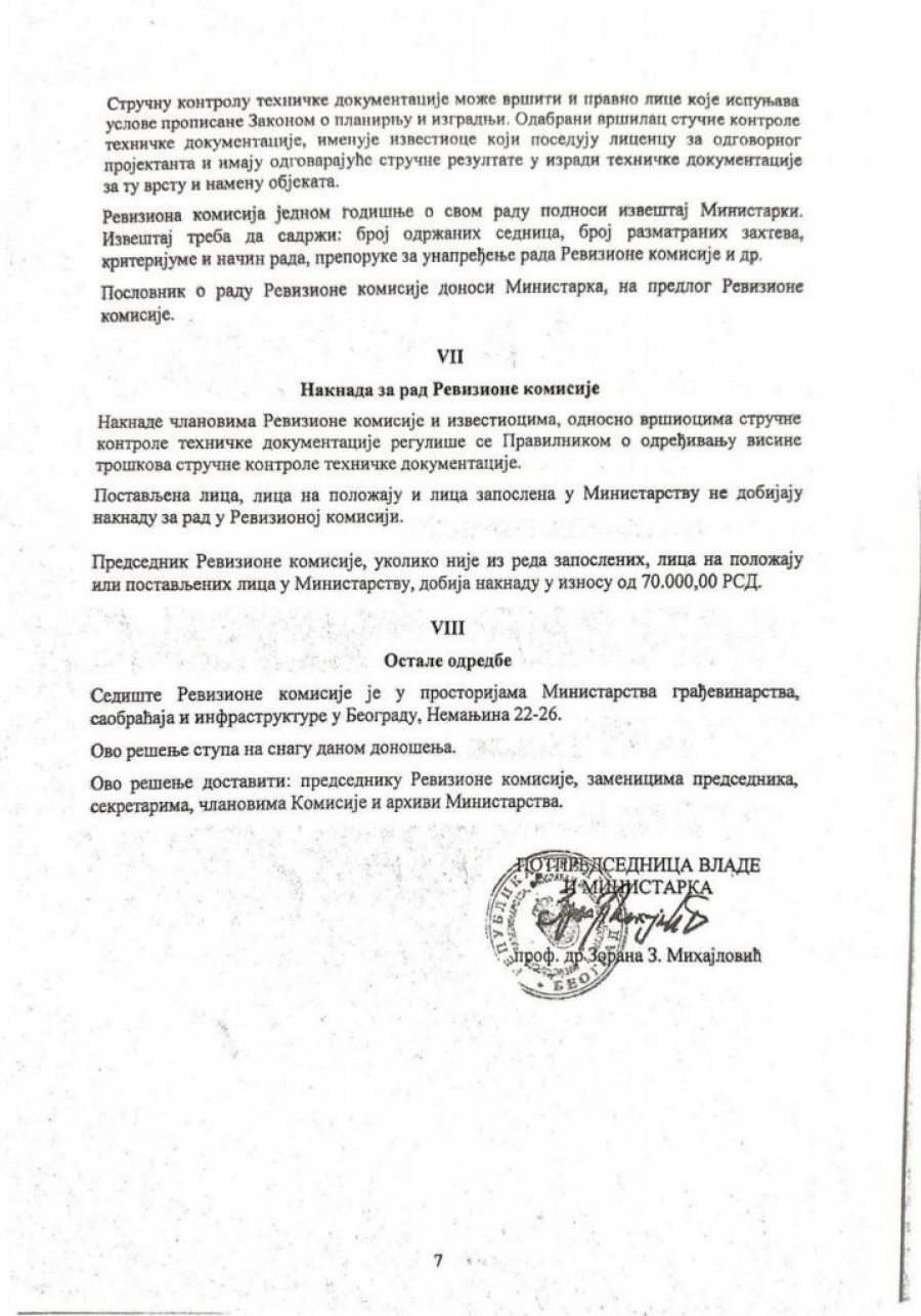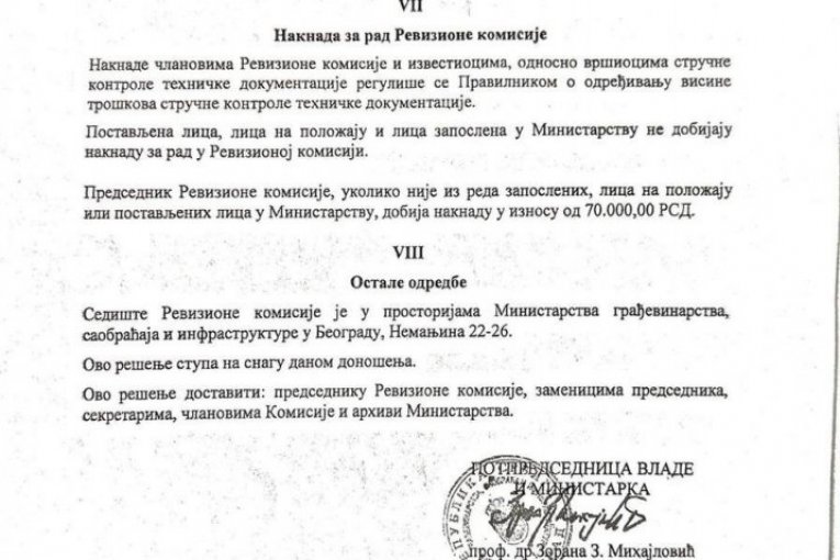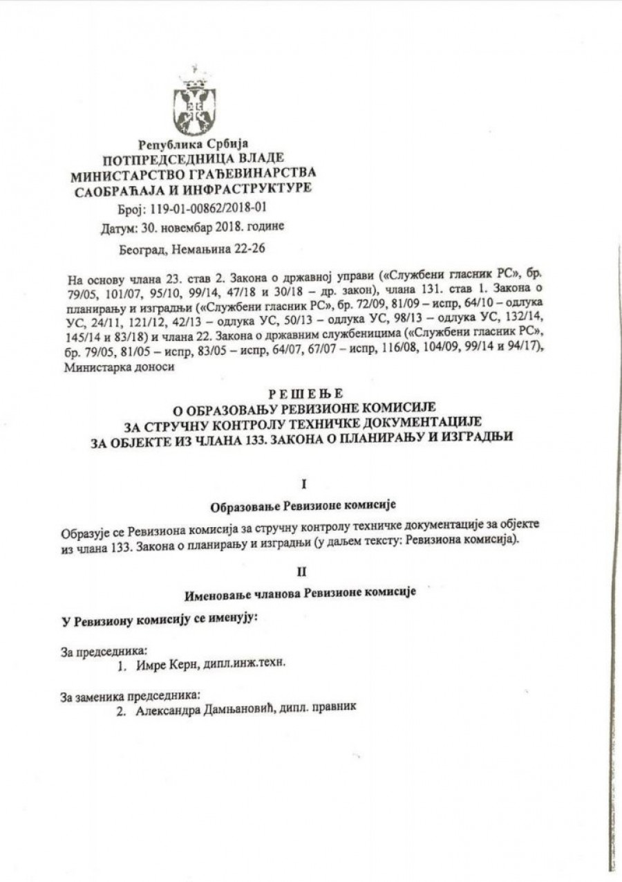 Ono što je ključno povodom rada ovog tela, jeste da bez pozitivnog izveštaja Revizione komisije nije moguće dobiti građevinsku dozvolu. To znači da je upravo ova komisija, svojim odlukama i potpisima, praktično garantovala da je projekat kojim su izvršeni radovi na Železničkoj stanici u Novom Sadu tehnički ispravan i bezbedan za izvođenje.
