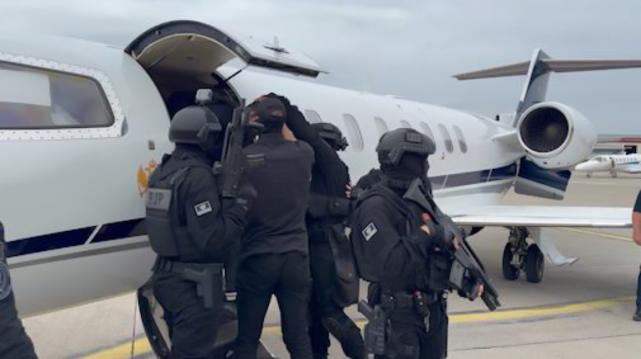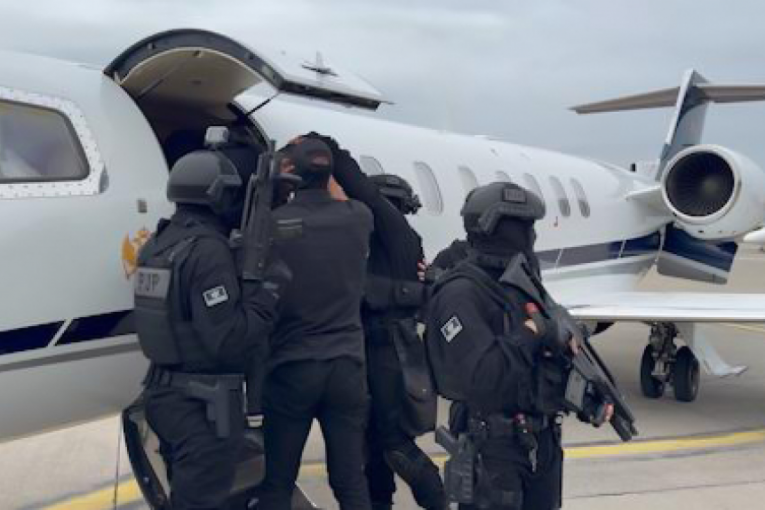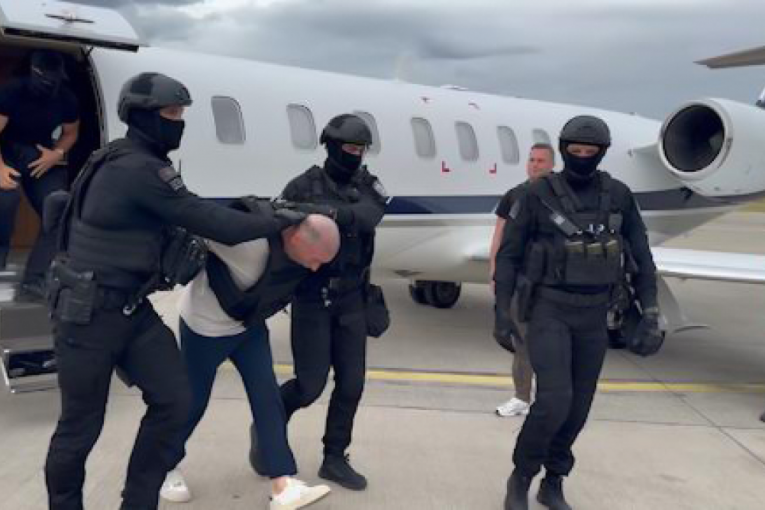 Izručenje Delića i Kekovića, kako se može videti na snimku, obavljeno je uz velike mere obezbeđenja. Specijalci u punoj opremi sa dugim cevima obezbeđivali su konvoj vozila kojim su dvojica begunaca sprovedeni dalje. Najpre jedan, a potom i drugi, prebačeni su iz aviona u policijska vozila.