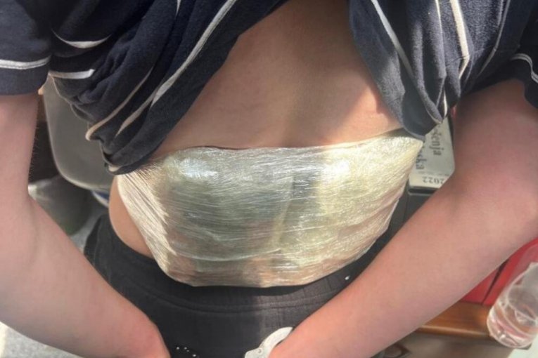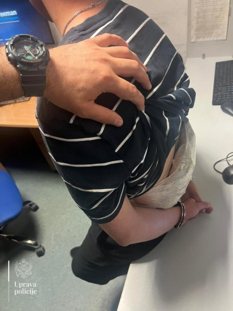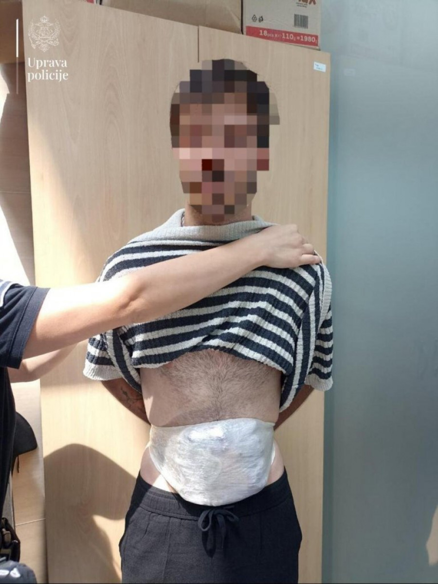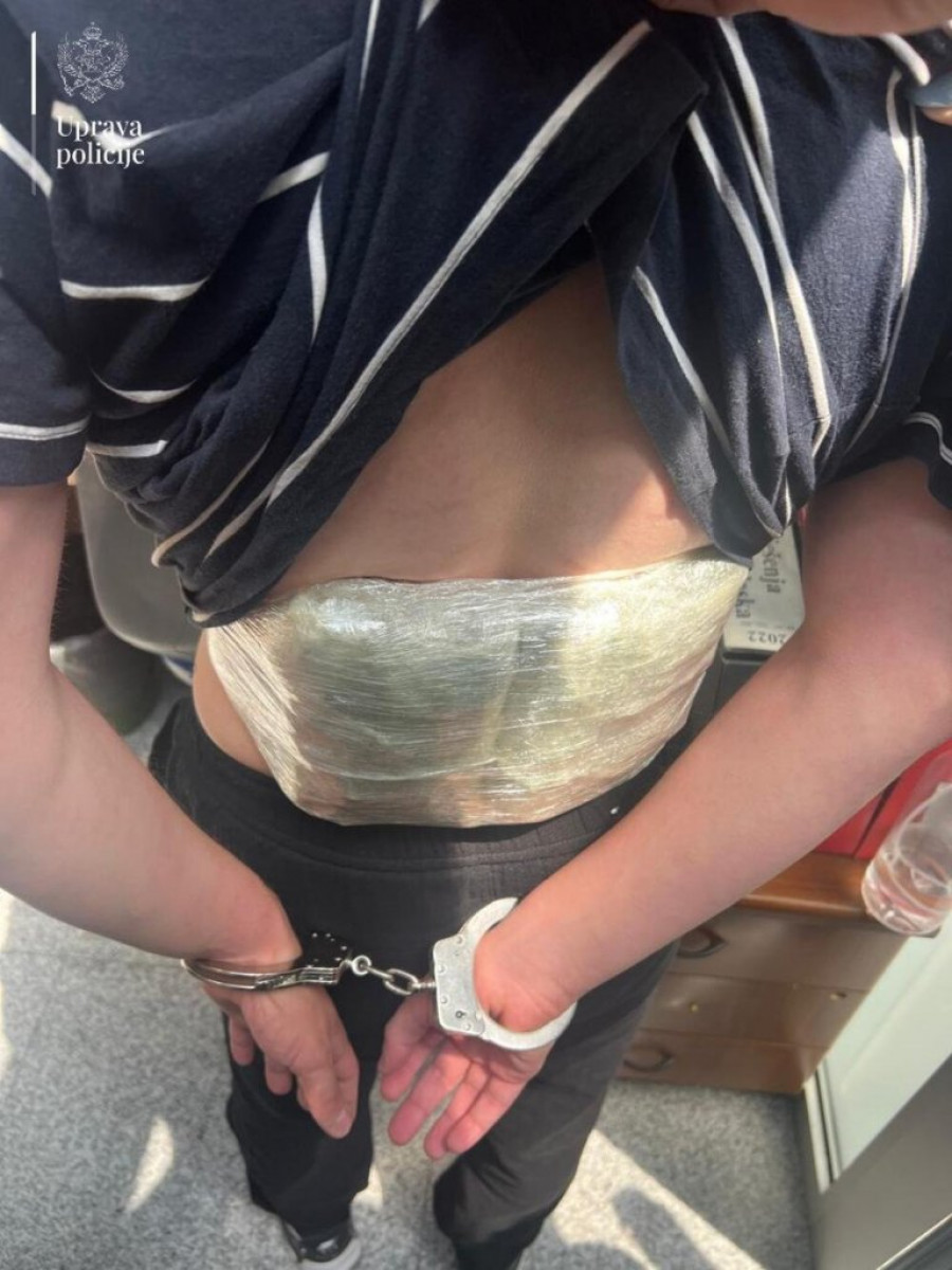 - Policijski službenici Regionalnog centra granične policije “Centar” u saradnji sa službenicima Službe bezbednosti Aerodroma Podgorica, su na graničnom prelazu Aerodrom Podgorica, na izlazu iz Crne Gore, prilikom kontrole putnika na letu strane aviokompanije, izvršili pregled dva lica, turskih državljana: T. T. (24) i C. E. (26), sa dozvolom za privremeni boravak i rad u Crnoj Gori. Izvršenim detaljnim pregledom, kod lica C. E, je ispod odeće, pričvršćeno lepljivom trakom, u predelu stomaka i prepona, pronađeno više pakovanja biljne materije nalik na opojnu drogu marihuanu, mase oko 490 grama, dok je kod lica T. T. pronađeno, na identičan način, pričvršćeno uz telo samolepljivom trakom, više pakovanja opojne droge marihuane, mase oko 440 grama -aopštila je Uprava policije.