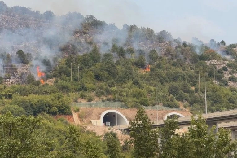 - Gori brdo iznad tunela, za sada je vatra ood kontrolom ali se situacija prati iz minuta u minut, jer vetar može sa okrene smer svake sekunde. Na auto-putu je parkirano vatrogasno vozilo koje spremno čeka da deluje ukoliko dođe do opasnosti - kaže za RINU meštanin Dragan Radonjić.
