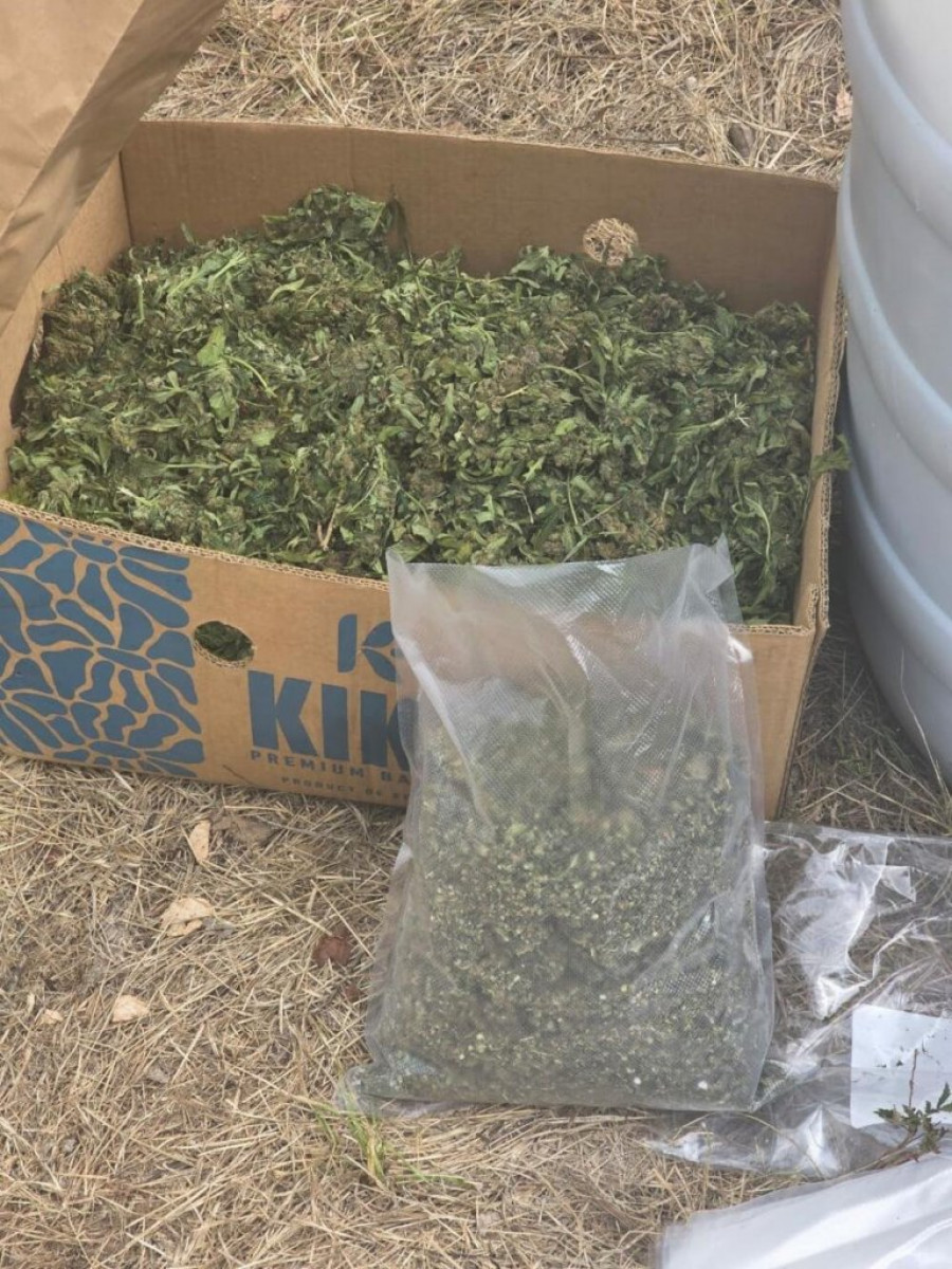 Na fotografijama se vide: improvizovana ručna naprava za obradu marihuane, objekat u izgradnji za sušenje biljaka, objekat za sušenje marihuane, pumpe za tretiranje biljaka hemijskim sredstvima...