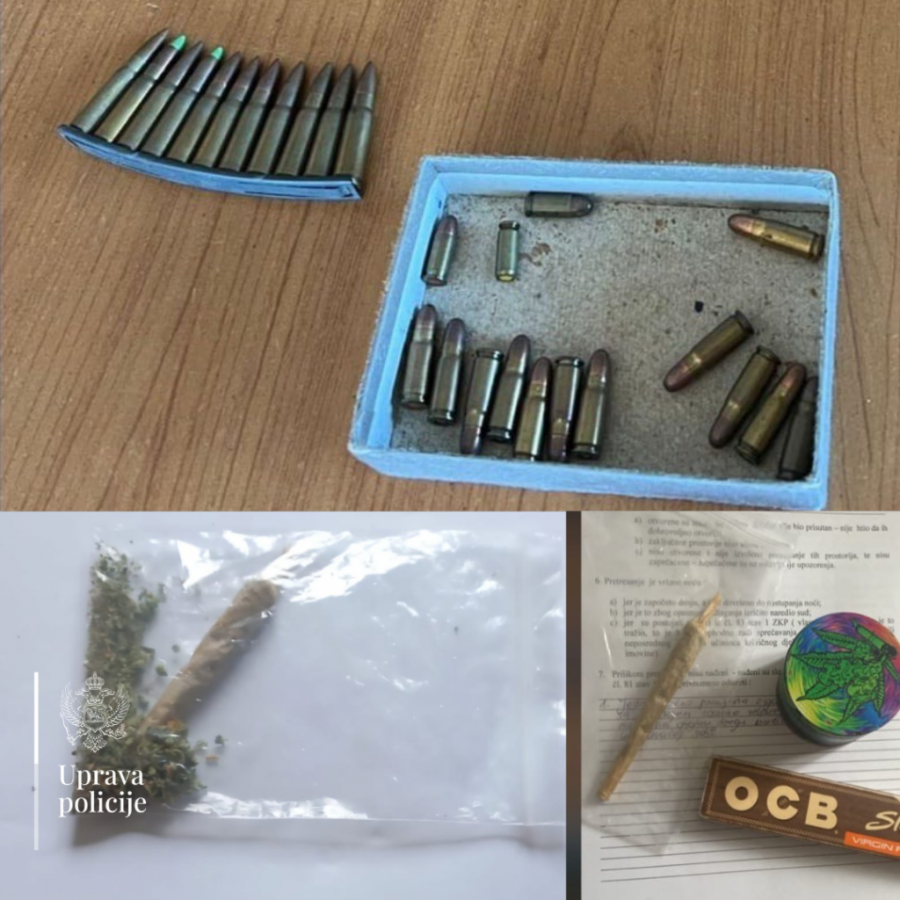Pretresom stana i drugih prostorija koje koristi V.O. iz Berana pronađeno je i oduzeto 26 komada municije, dok je pretresom prostorija koje koristi N.V. iz Andrijevice policija pronašla i oduzela 28 tableta sa liste opijata, startni pištolj, 16 komada municije, vazdušnu pušku i municiju za istu.
