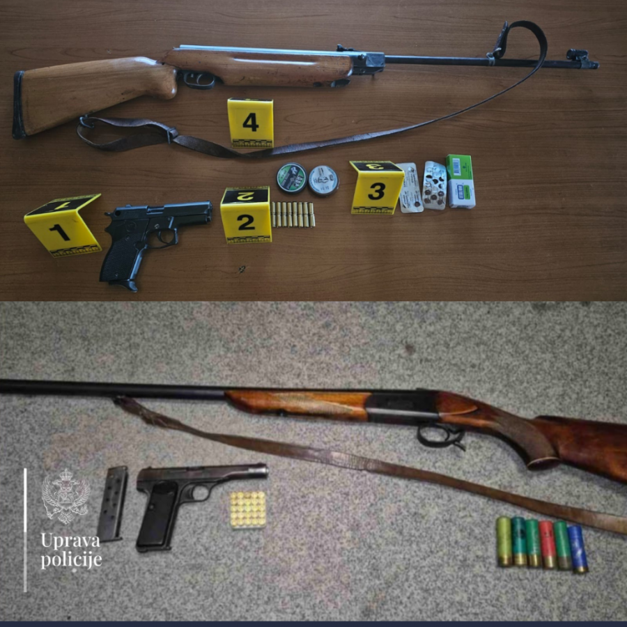 - Pretresom stana i drugih prostorija koje koristi P.I. iz Kolašina pronađeni su pištolj, puška i 33 komada municije. Po nalogu tužioca iz Osnovnog državnog tužilaštva u Kolašinu, protiv P.I. podneta je krivična prijava zbog sumnje da je izvršio krivično delo nedozvoljeno držanje i nošenje oružja i eksplozivnih materija - saopšteno je iz Uprave policije.