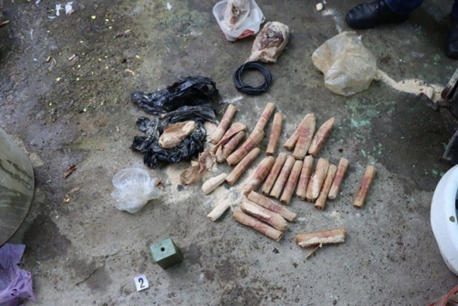 Dalje, prilikom pretresa druge lokacije, pronađeno je i oduzeto 7,7 kilograma marihuane, kao i oružje: 6 ručnih bombi M79, M754, jedna improvizovana ručna bomba, 2,3 kilograma industrijskog eksploziva, 0,5 grama TNT-a, 0,9 kilograma eksploziva Vitezit, 6 metara sporogorećeg štapina, ručno izrađena kubura, 4 okvira za automatsko oružje, 500 komada razne municije i 4 tromblonske mine.