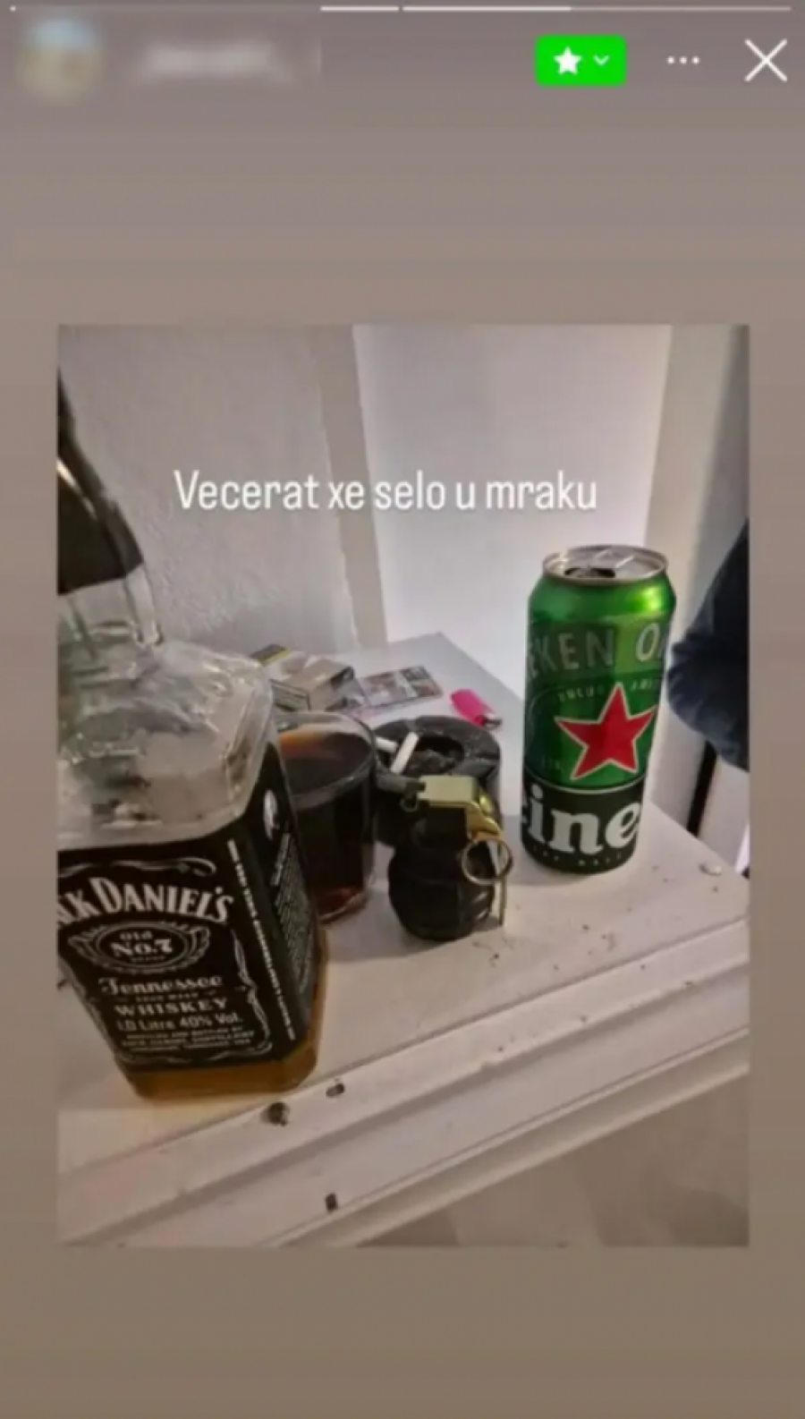 Na društvenim mrežama pojavio se skrinšot objave za koju se tvrdi da pripada osobi koja je prisustvovala zabavi u trenutku eksplozije. Fotografija prikazuje sto na kojem se nalaze alkoholna pića i ručna bomba.