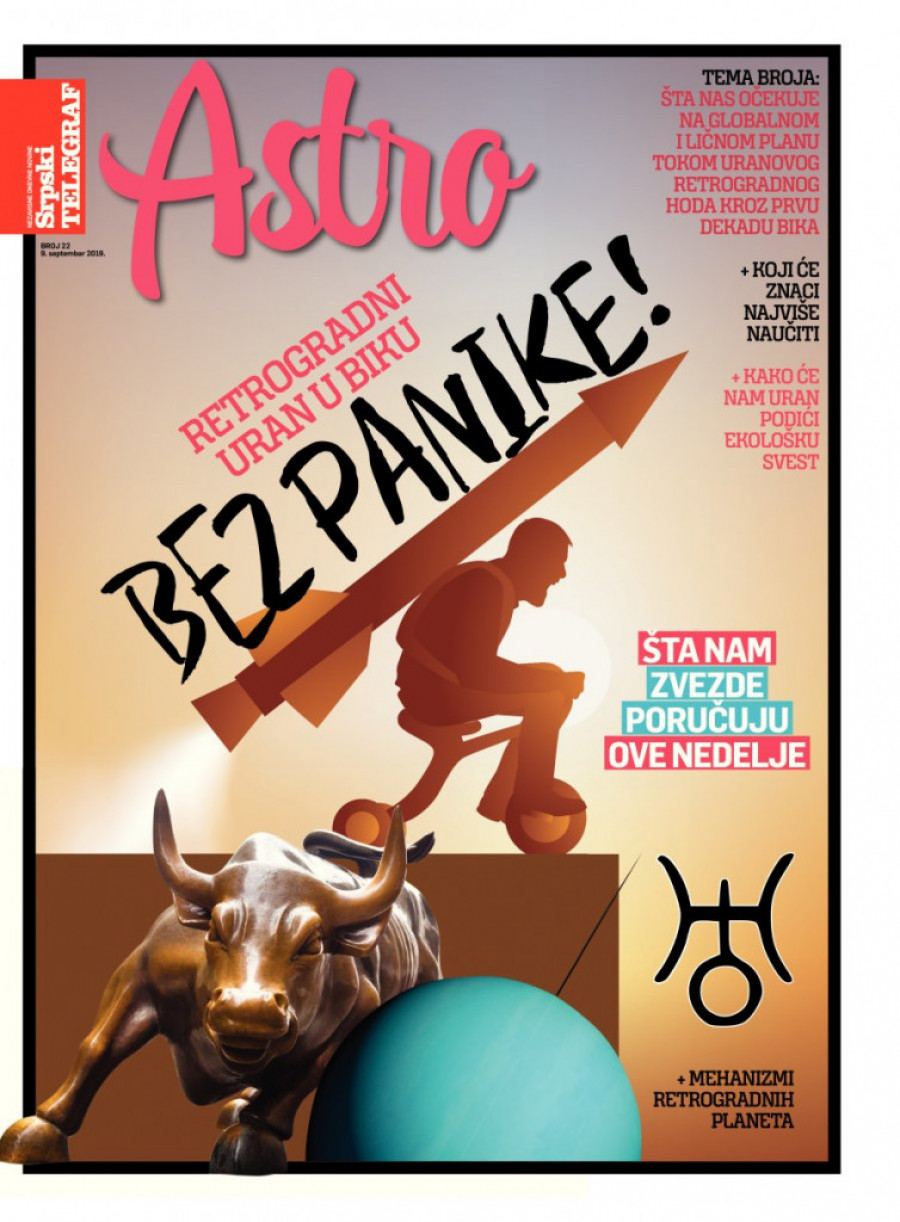 Nastupa period retrogradnog Urana u Biku, a to će se na mnogo nivoa odraziti na sve horoskopske znakove. Ono što će kod svih biti dominantno jeste unapređenje ekološke svesti. O svim dejstvima ove astrološke pojave možete čitati u dodatku "Astro".