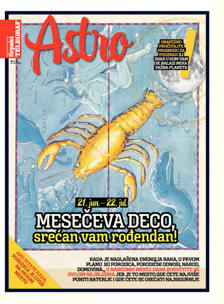 Našim dragim čitaocima uz štampano izdanje Srpskog telegrafa poklanjamo magazin Astro u kome možete da pronađete brojne korisne informacije iz oblasti astrologije i saznate šta vas čeka u narednom periodu.