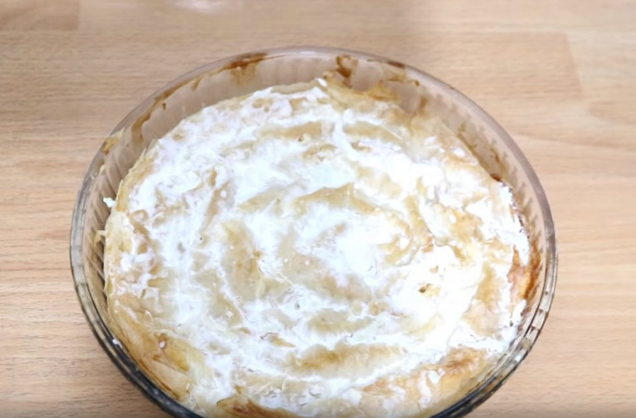 Pečenu pitu premazati i vratiti u rernu oko 10 min.
