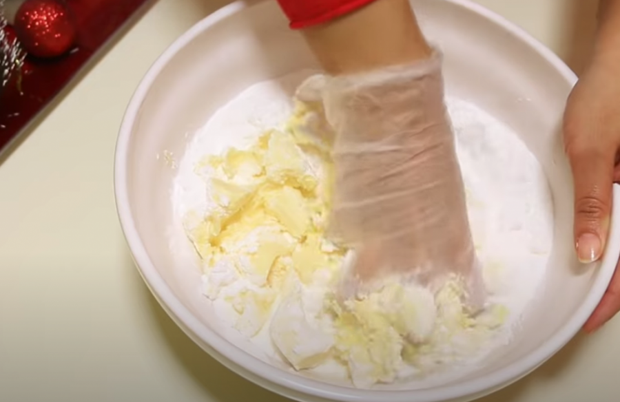 Na ravnu površinu zalepite prozirnu foliju. Smesu stavite na istu i prekrijte je drugim delom folije, a zatim oblikujte rukama. Ostavite je u frižider da se stegne na 20 minuta.