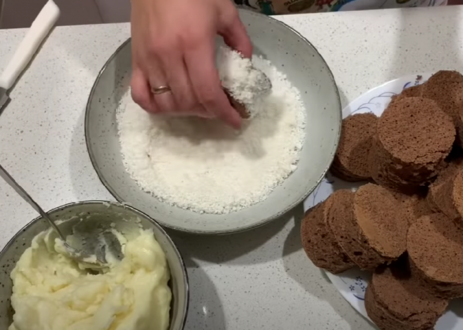 Mutite mikserom dok ne sjedinite sve i dok ne nestanu grudvice.Krug koji ste isekli iz kore, napunite veliko kašikom fila, preklopite ga drugim krugom i nožem namažete kolač filom i okolo. Stranice uvaljate u kokos. Kada su sve kapice napravljene, u manju šerpicu skuvajte slatku pavlaku i čokoladu. Stavite na laganu vatru i neprestano mešajte. Ostavite nekih 10-15 minuta da stoji. Na vrh kapice stavljate po jednu kašičicu glazure i lepo rasporedite da se formira krug. Kolače stavite u frižider da se stegne. Uživajte!