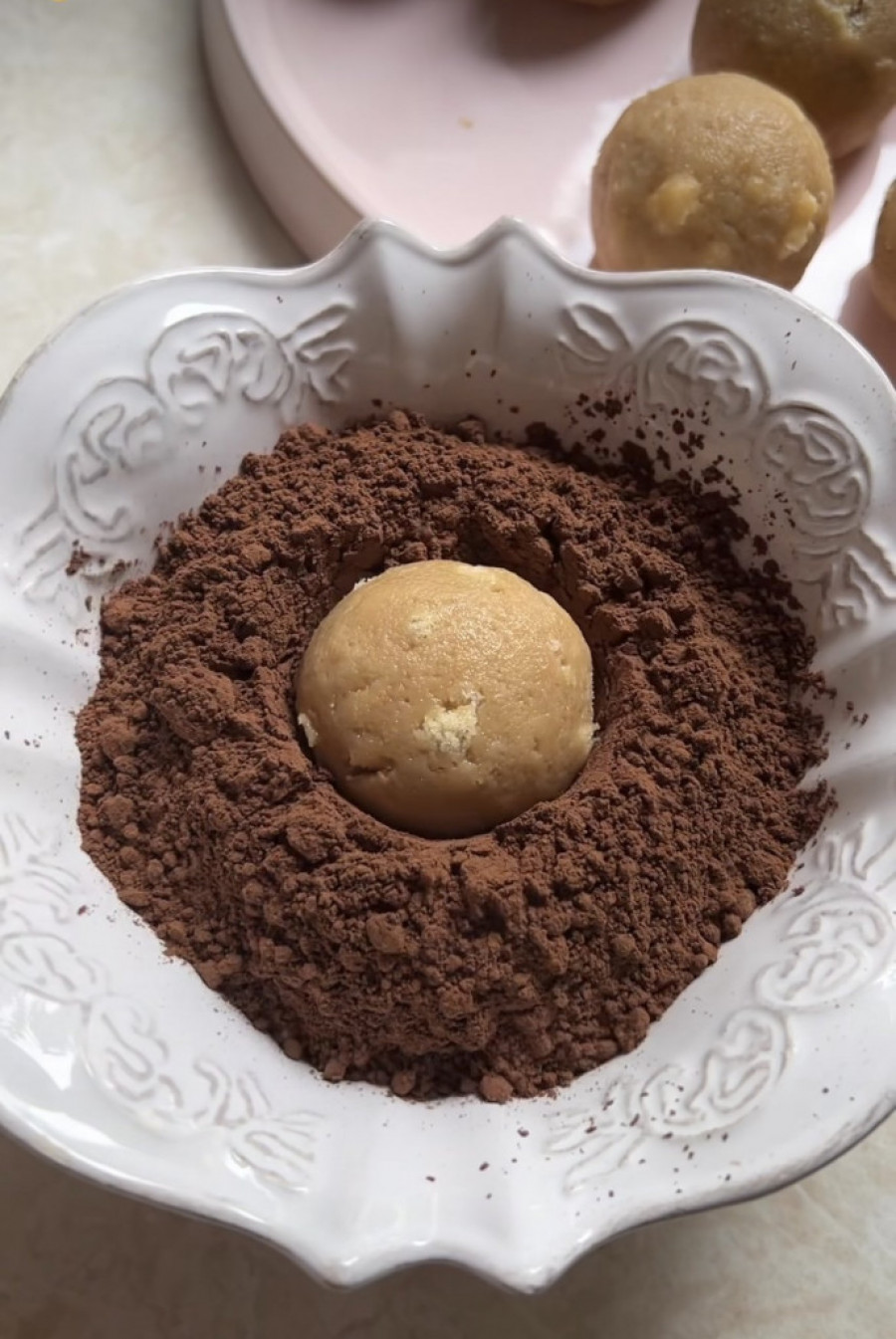 6. Od smese sada uzimati po malo, rastanjiti na dlanu, dodati malo krema i formirati bombicu.