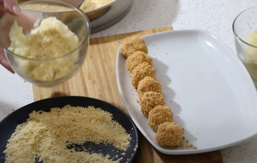 Mlevene krekere dodajte u smesu, a kada sve spojite kuglicu uvaljate u mleveni kreker takođe.