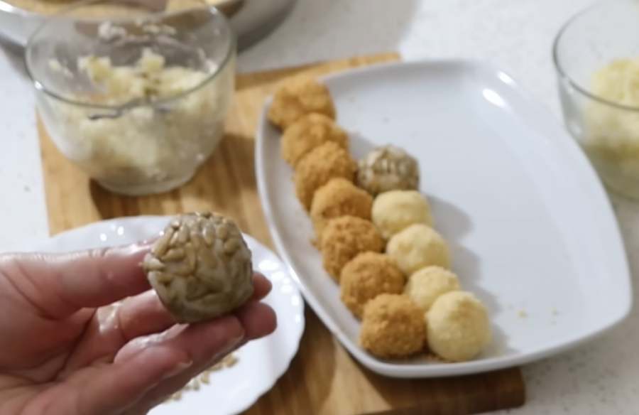 Semenke dodajete u krompir, lepo formirate kuglicu, pa istu uvaljate.