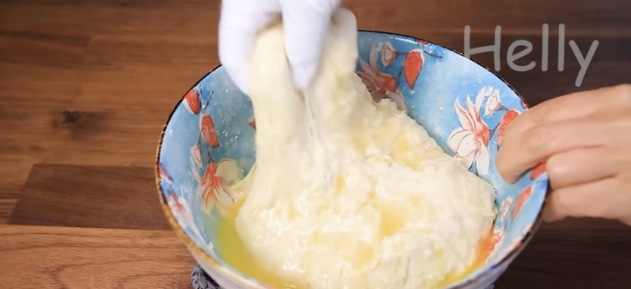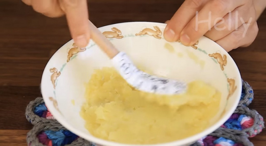 Iseckajte krompir na kockice. Dodajte oko jednu kašiku vode. Stavite u mikrotalasnu na 4 do 5 minuta u činiju koja ima poklopac. Krompir lepo izgnječite i dodajte 180 mililitara vode. Vodu dodajte postepeno, malo po malo dok smesa ne postane vodenasta. Smesi dodajte beli šećer i kvasac. U posebnu čijiju stavite jedno jaje koje ćete umutiti viljuškom. Pola sipajte u smesu pola sačuvajte za kasnije. Dodajete i brašno i mesite testo. Ostavite ga pokrivenog 20 minuta da naraste. Kada je prošlo 20 minuta prelijete ga maslacem.
