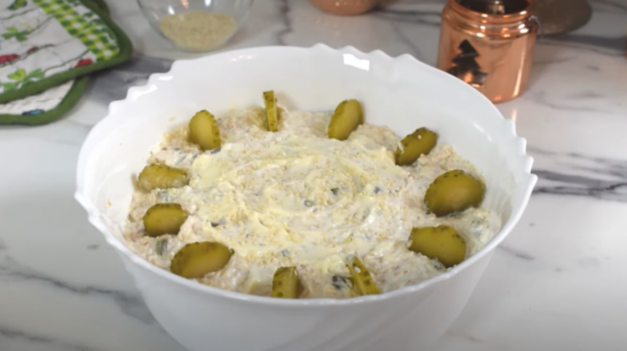 Promešati pa još začiniti po želji. Dobro promešati i dodati zgnječene krastavce. Poslužiti uz bilo kakvo meso ili po želji (roštilj, kobasice sa sirom.) Može stajati u frižideru 2 - 3 dana. Ohlađeno je još ukusnije, prenose "Domaći kolači".