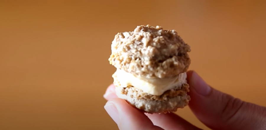 Odvojite tri belanca i posebno uh umutite dok ne postane penasto, a onda dodajte postepeno 300 grama šećera u prahu. Smesa ne treba da bude čvrsta kao sneg. Dodajte 350 grama mlevenih oraha i promešajte kašikom. Stavite papir za pečenje u pleh u kom ćete peći kolačiće. Malom kašikom vadite krugove. Pravite dovoljno razmaka između kolača i neka ne budu preveliki. Od ove količine fila dobićete tri velika pleha kolačića. Stavite u rernu koju ste prethodno zagrejali na 150 stepeni oko 30 minuta. Moraju se potpuno ohladiti.