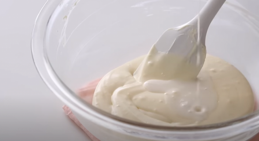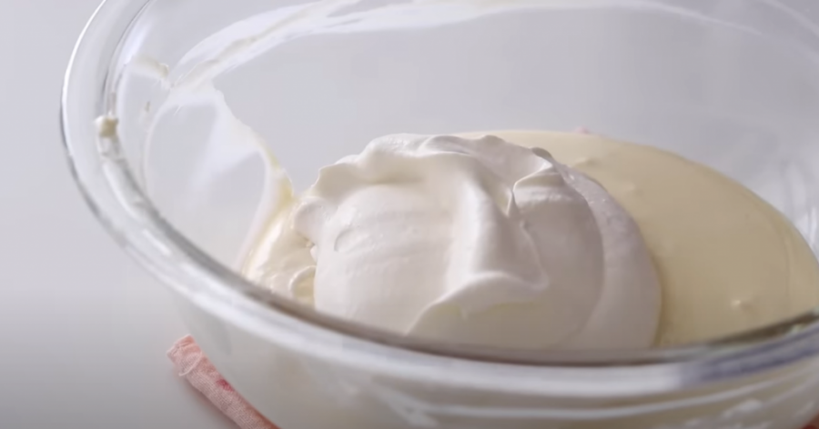 Treći korak: U krem sir dodajte jogurt i 30 grama šećera. Sjedinite kašikom.