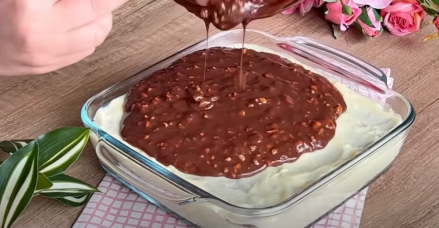 Smesom prelijte kolač. Ostavite da se stegne pre konzumiranja.