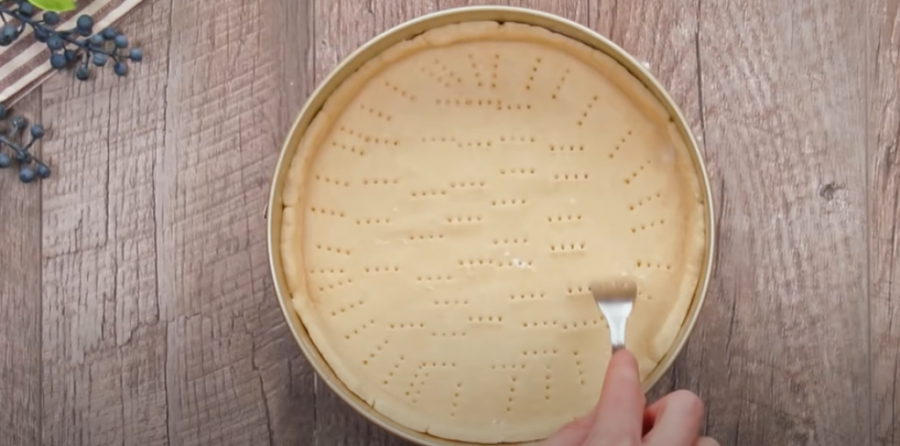 Testo stavite u pleh prečnika 20 centimetara. Viljuškom probušite testo. Ispecite ga na 180 stepeni oko 15 minuta.