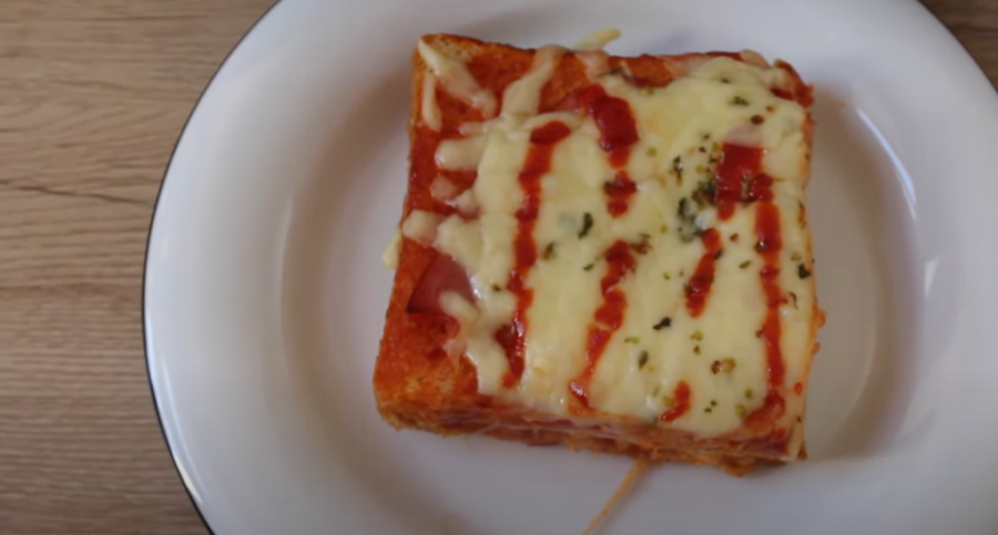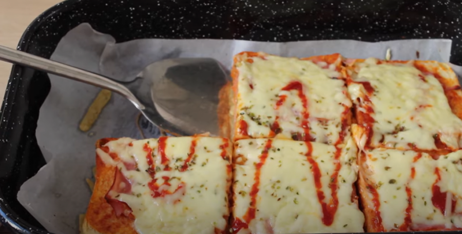 Priprema: Dva jaja posoliti i dodati oko 200 mililitara mleka. Sjediniti ručnom mutilicom i uzeti tost hleb. Potrebno je da hleb sa obe strane umačete u jaja i mleko. U pleh stavite papir za pečenje, a potom umočeni hleb. Preko hleba stavite kečap, razmažite ga i dodajte origano. Izrendajte 150 grama kačkavalja. Preko hleba stavite šunku, a potom kačkavalj. To preklopite još jednom turom hleba. Na vrh stavite ponovo kečap, šunku, kačkavalj i origano. Takođe, ponovo dodajte malo kečapa.