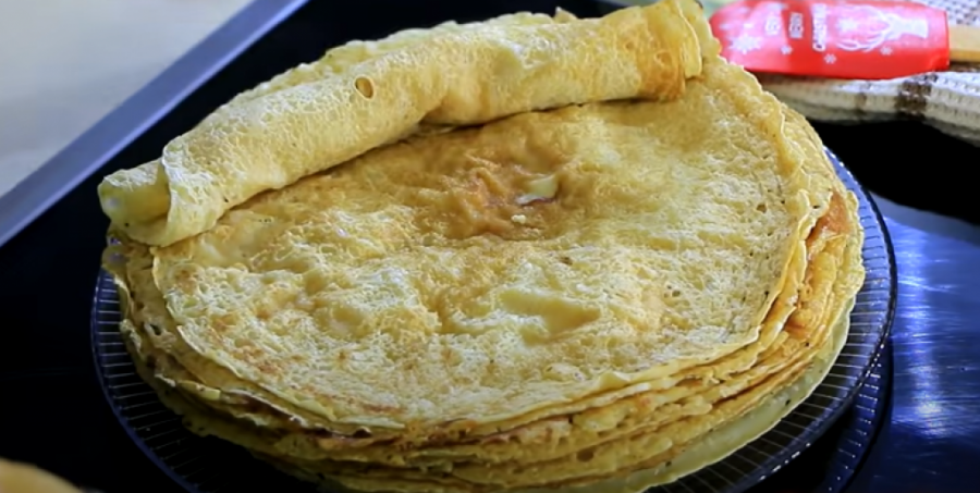 U četiri jaja dodajte jednu kašiku šećera, mutite tačno dva minuta ručnom mutilicom. Potom dok mešate dodajte mleko 250 mililitara. Glatko brašno prosejte direktno u smesu oko 250 grama. Ponovo dobro izmešajte ručnom mutilicom. Kada se testo dobro sjedinilo dodajte oko polovinu kašičice sode bikarbone, kao i jednu četvrtinu kašike soli. Dodajte postupno 250 mililitara vode. Kada ste sve to sjedinili, za kraj sipajte 50 mililitara ulja direktno u testo.