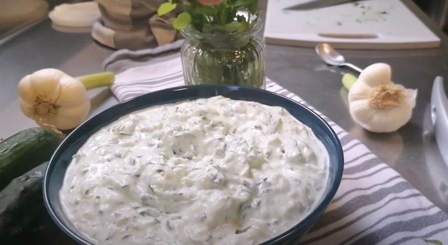 Krastavac prvo presecite na pola, a onda izrendajte zajedno sa korom na sitno rende. Stavite u neku gazu i onda ocedite od viška tečnosti. Potom krastavcu dodajte grčki jogurt, dva čena belog luka, malo limunovog soka i začine. Sve sjedinite kašikom. Mešajte sve dok se smesa ne ujednači. Poslužite uz krompir, dvopek ili neko meso.