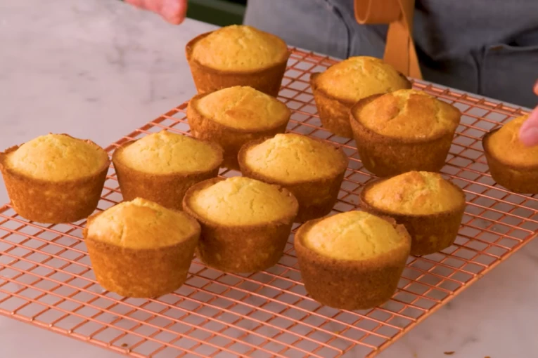 Umutite kukuruzno brašno, brašno, šećer, so i prašak za pecivo. Zatim u drugoj posudi umutite mleko, puter u koji ste prethodno istopili jaja i med.