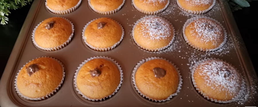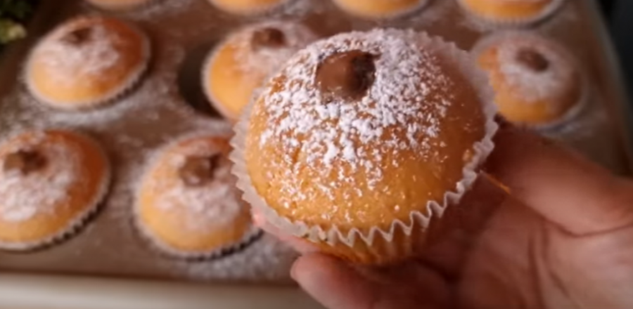 Ovo je najjednostavniji recept za mafine sa kremom. Smesa se brzo i lako pravi, potrebno je da bude gusta kao ona za američke palačinke i ne više od toga. Pre pečenja u smesu stavljate kašiku krema, ili kocku čokolade. Na kraju da bi bilo slađe posipate šećerom u prahu, a to možete i izostaviti ako ne želite da bude previše slatko. Bitno je da šećer u prahu ne posipate dok su mafini vreli jer će se odmah otopiti.
