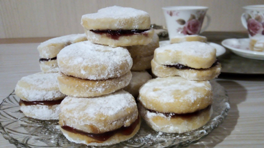 Kada su keksići potpuno hladni, možete ih spojiti filom. Uzmite jedan keksić, nanesite malo fila na njega, a zatim prekrijte drugim keksićem da biste napravili sendvič. Takođe, umesto tog fila možete stavite džem od šljiva.